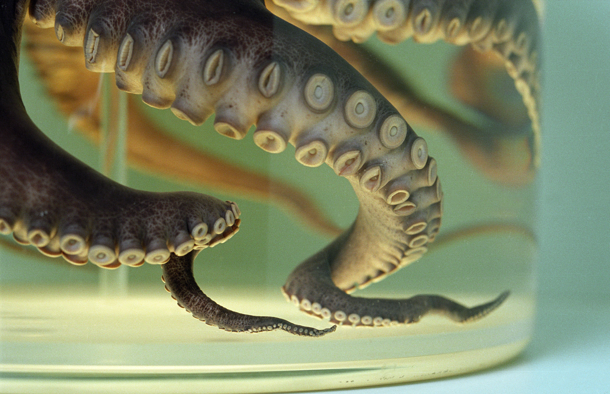 Tentakel einer in Alkohol eingelegten Krake.